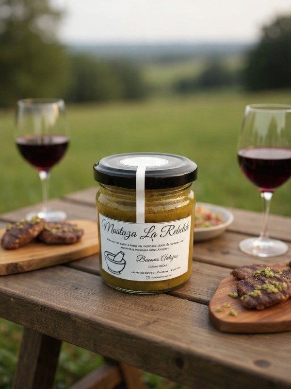 Creada en Capilla del Monte, La Rebelde es un aderezo de autor que rompe el molde desde el primer bocado. Partimos de mostaza de primera marca, y la transformamos artesanalmente en una receta agridulce, donde conviven toques de miel, dulce de naranja y especias seleccionadas que le dan una personalidad vibrante.