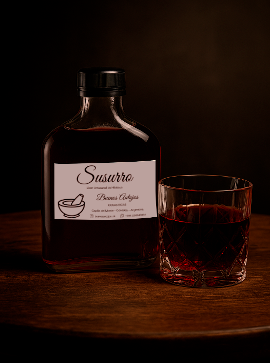 Nacido en Capilla del Monte, Susurro es un licor artesanal creado para celebrar la frescura y el color de la flor de hibiscus (o flor de Jamaica). Su perfil es vibrante, floral y luminoso, con un equilibrio preciso entre acidez, dulzura y especias.